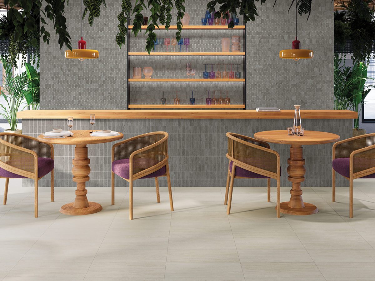 Portland Cliff porcelain tile takes inspiration from the rugged coastal shores of South Dorset on the Isle of Portland in the UK. By using the latest glazing technology, Visual Touch Technology™, realistic details of natural veining and shade variations of Jurassic limestone are enhanced with subtle texture that flows with the pattern on each piece of tile.