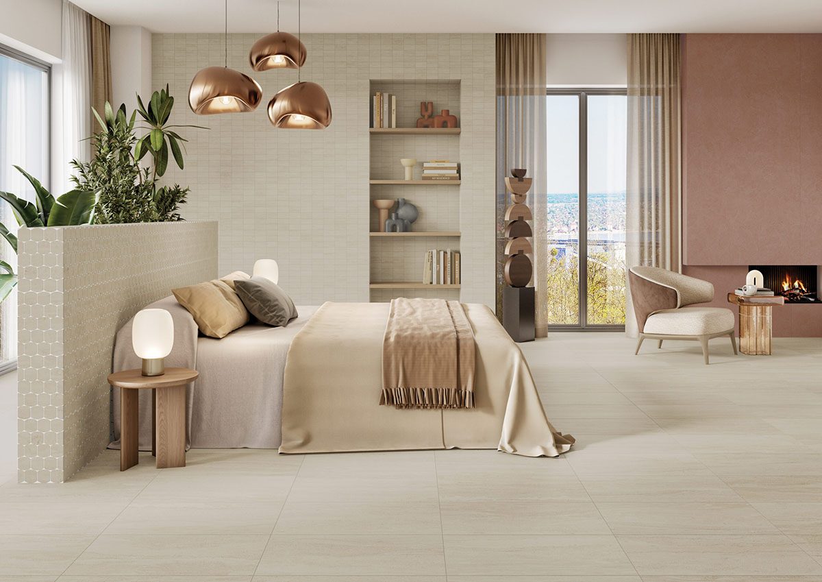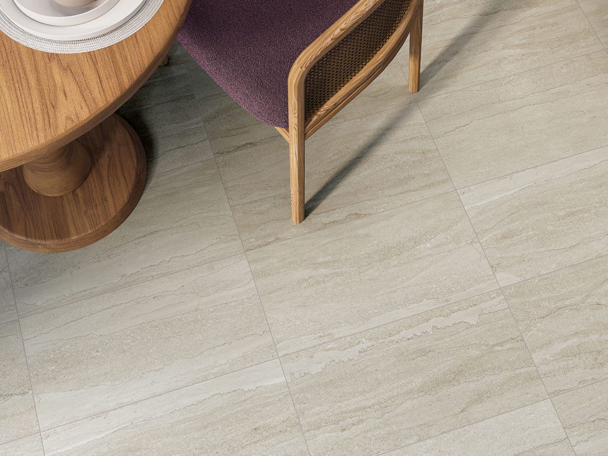 Portland Cliff porcelain tile takes inspiration from the rugged coastal shores of South Dorset on the Isle of Portland in the UK. By using the latest glazing technology, Visual Touch Technology™, realistic details of natural veining and shade variations of Jurassic limestone are enhanced with subtle texture that flows with the pattern on each piece of tile.