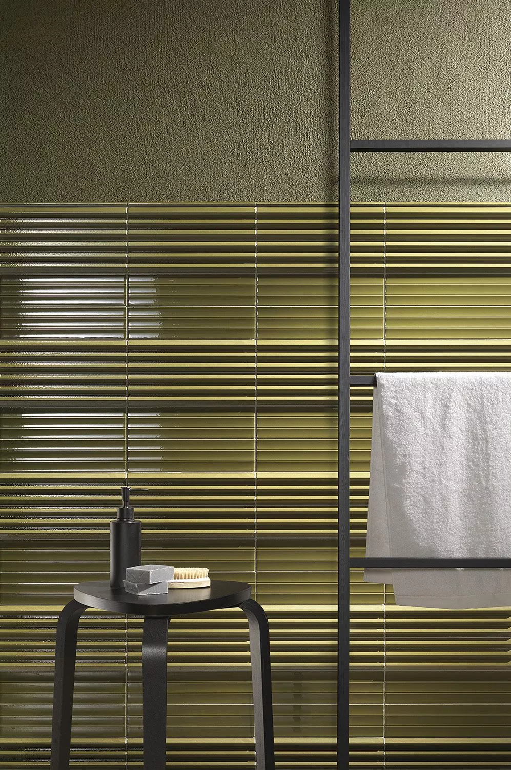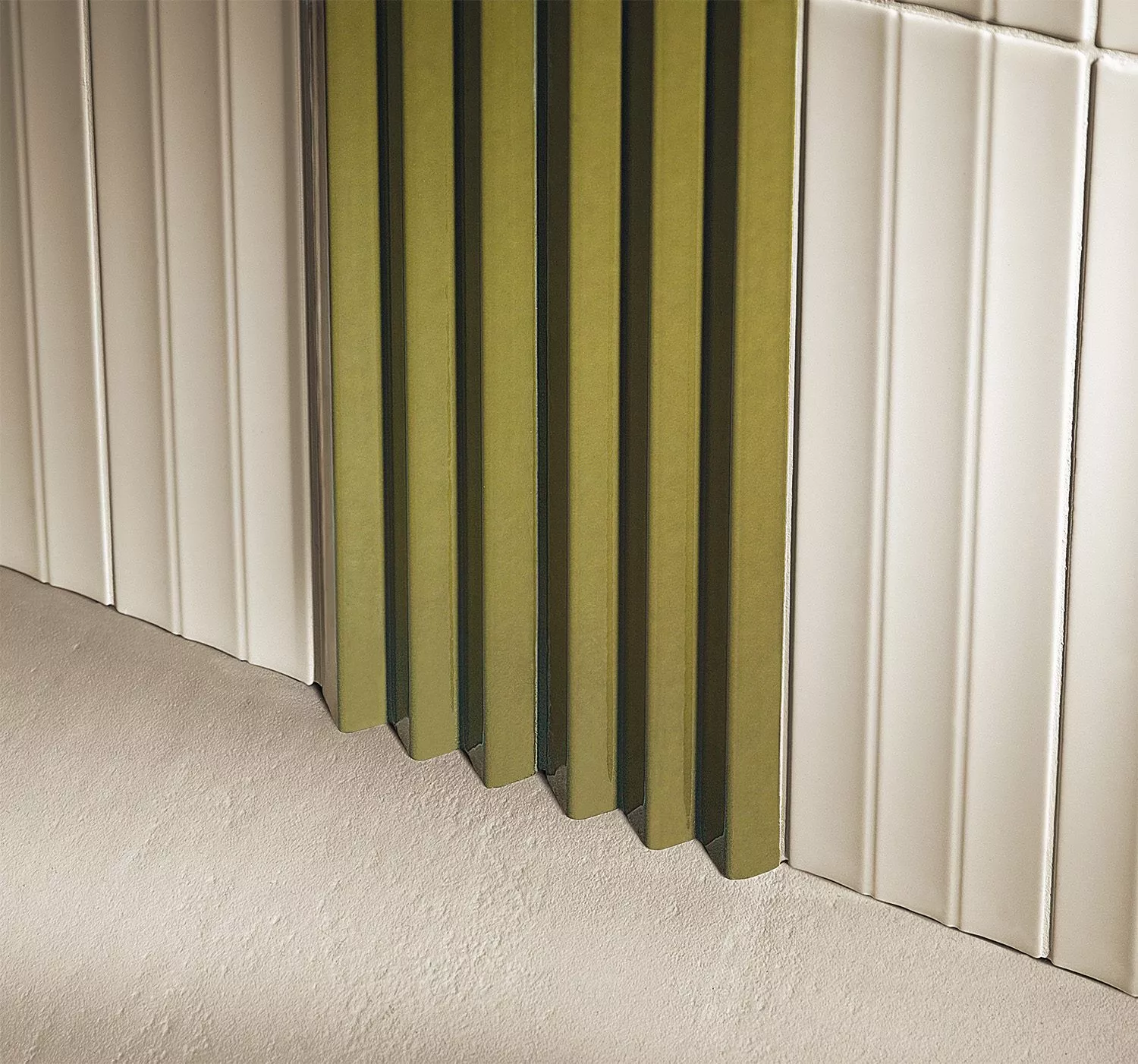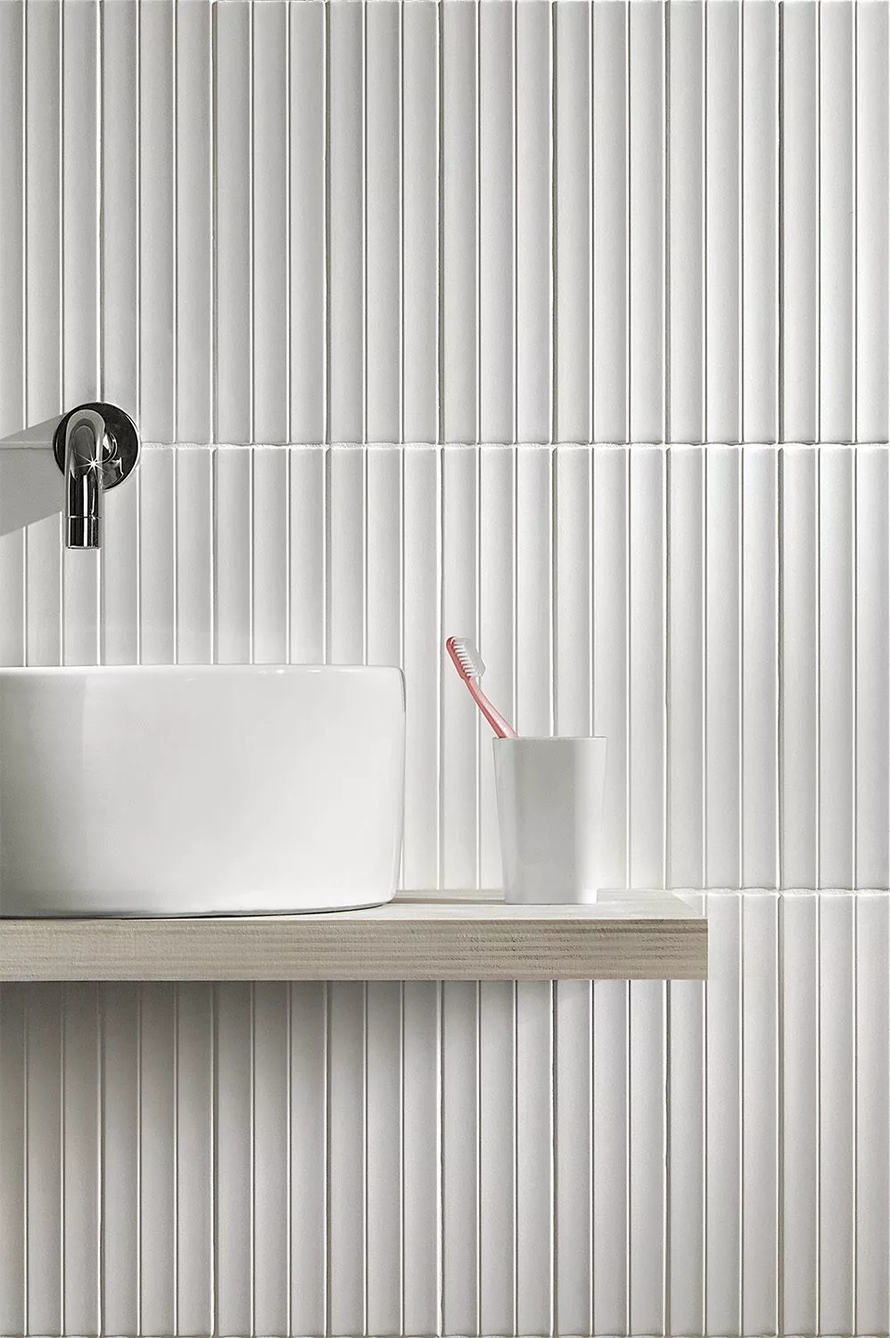 Abacus ceramic wall tile is big on texture! This collection is produced in two different 3D linear tactile surfaces — a bold tuck and crease pleated design and a softer fluted version. The color options are modern and fashion forward. Abacus is sized 3” x 12” and can be applied vertically or horizontally on walls.