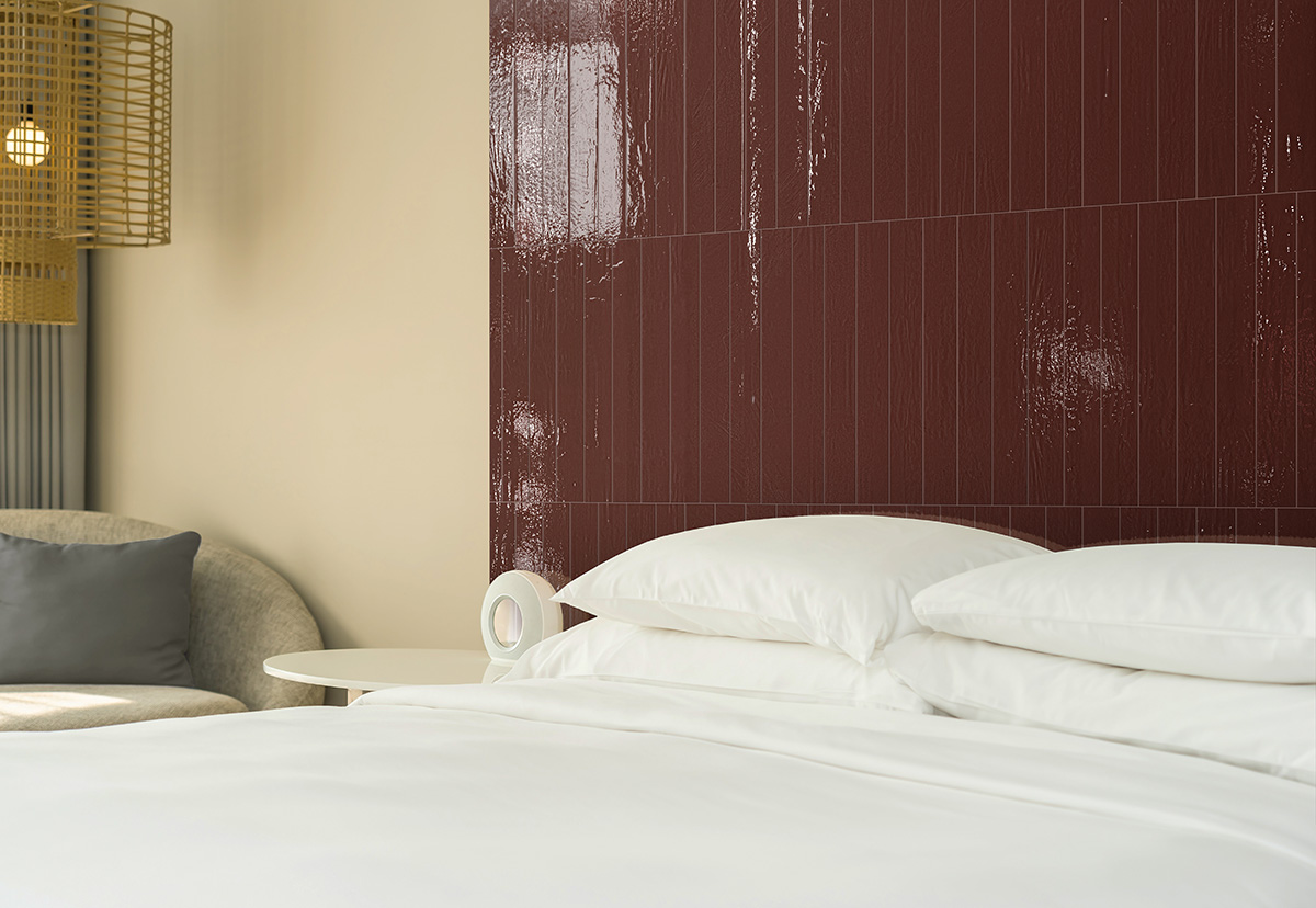 Fresh, vibrant, and playful, Lark porcelain tile brings energy to any space, from commercial environments and cafés to modern kitchens and spa‑like retreats. Inspired by the artistry of handmade tile and crafted with thoughtful detail, this collection encourages creative expression for spaces that feel inspired and inviting. Lark is produced in two sizes — 6” x 24” and 3” x 24”, and is a carbon neutral material that is made in the USA.